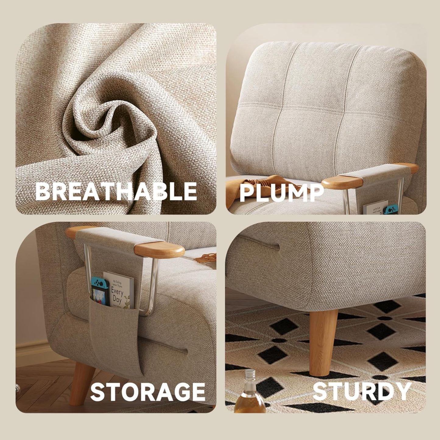 - ⭐ 【Soft Fabric & Durable Construction】Upholstered in soft, breathable fabric that feels comfortable against the skin. The sturdy frame and supportive structure ensure durability and stability for everyday use.