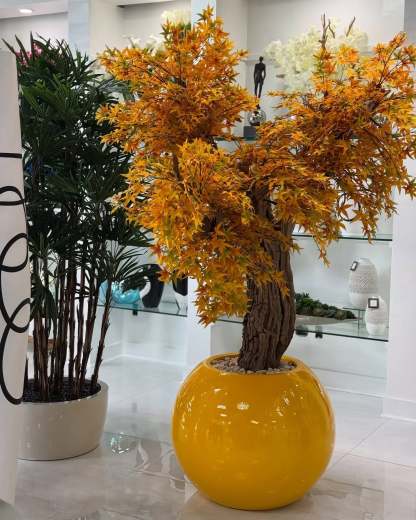AUTUMN ELEGANCE, YEAR-ROUND – THE AURVA™ GOLDEN MAPLE TREE IN DAX L GLOSSY YELLOW PLANTER