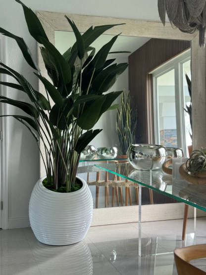 Perfect for living rooms, lobbies, luxury offices, or hospitality environments, the Aviara™ Bird of Paradise provides effortless greenery with a contemporary twist.