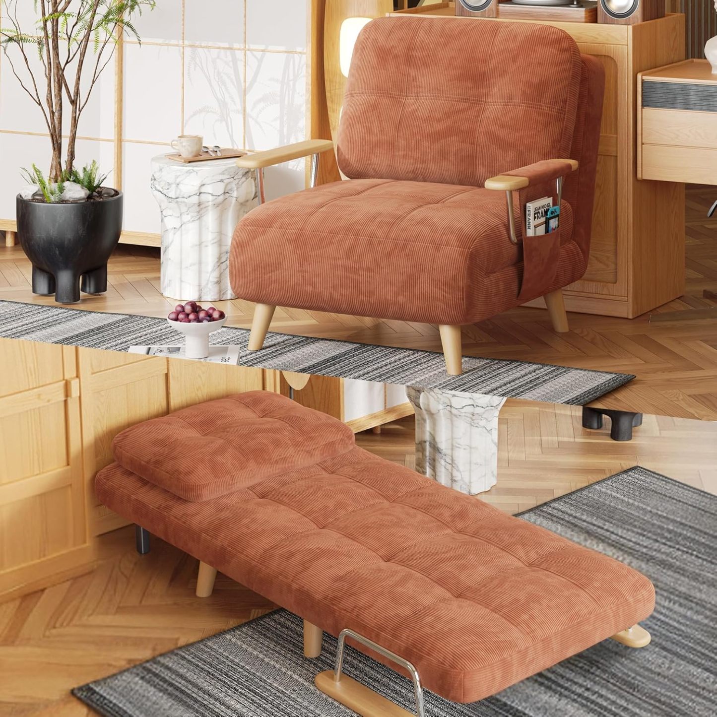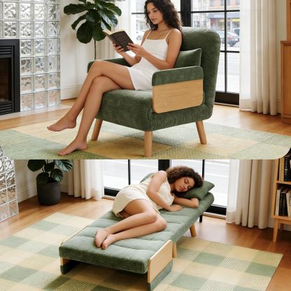 - 💡【Less than 11 sq ft, and you can still enjoy a sofa bed】This convertible sleeper chair is ideal for small spaces,Effortlessly transform the chair bed sleeper for adults into an stylish futon chair, a cozy chaise lounge to relax, or a comfy sleeper bed.This sofa bed can be placed in dorms, apartments, offices, living rooms and balconies, and fits a variety of home decoration styles.