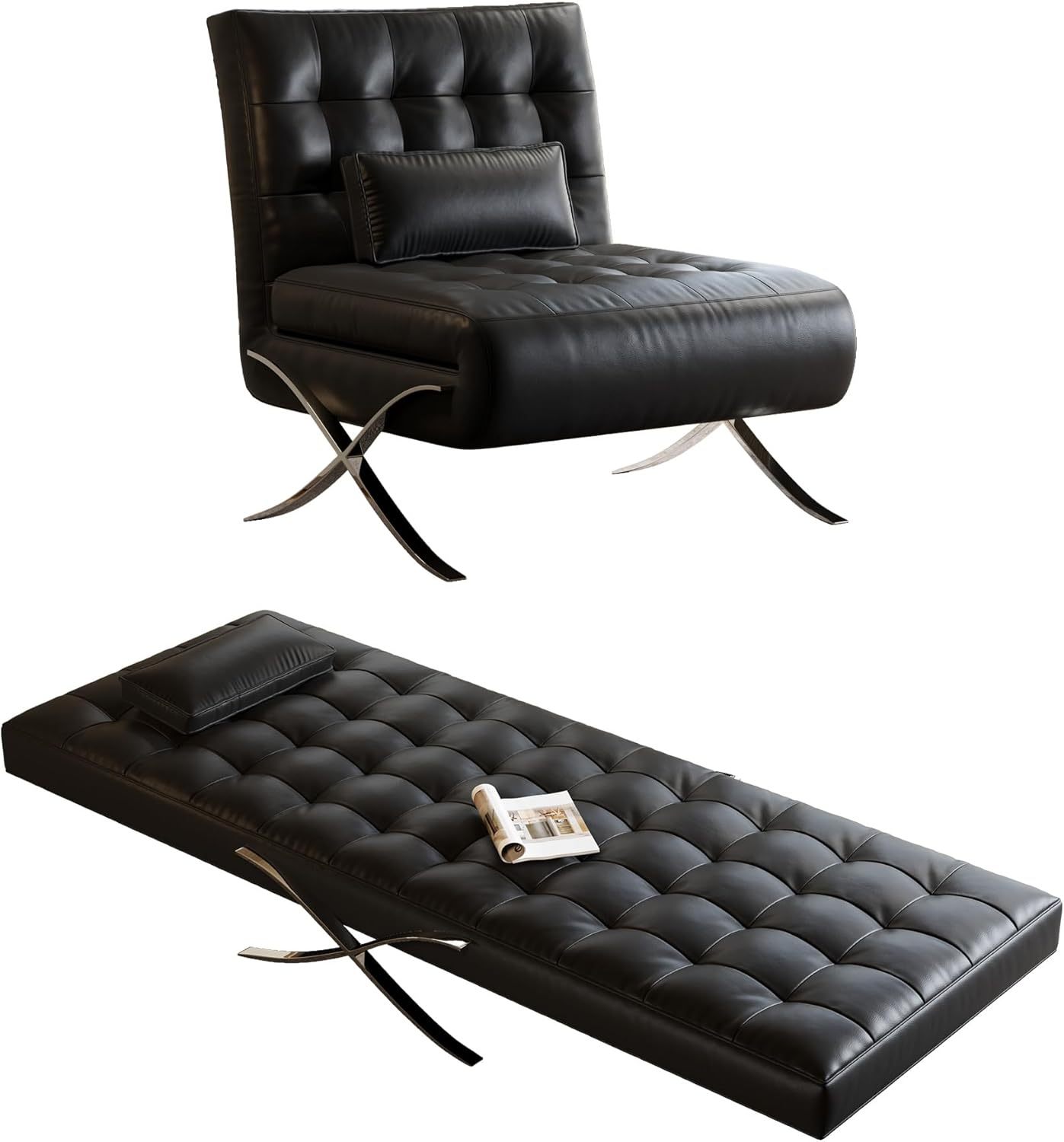 - 【3 in 1 Convertible Sleeper Chair】: This black futon sofa transforms from a stylish modern couch into a full-size comfortable guest bed in seconds. The easy Fold out mechanism requires no heavy lifting, One piece of furniture, three distinct functions to adapt to your every need.