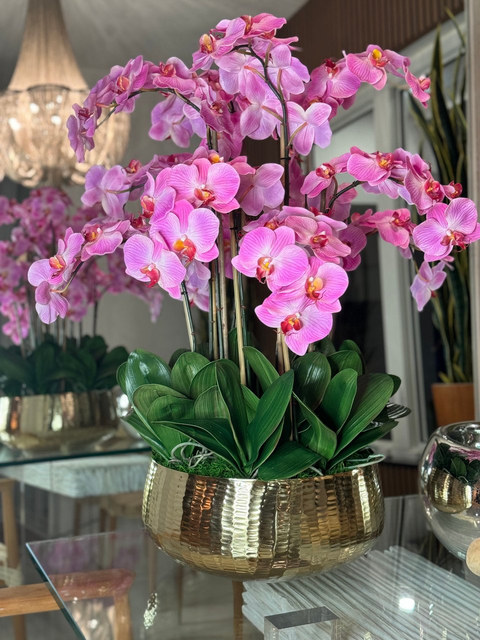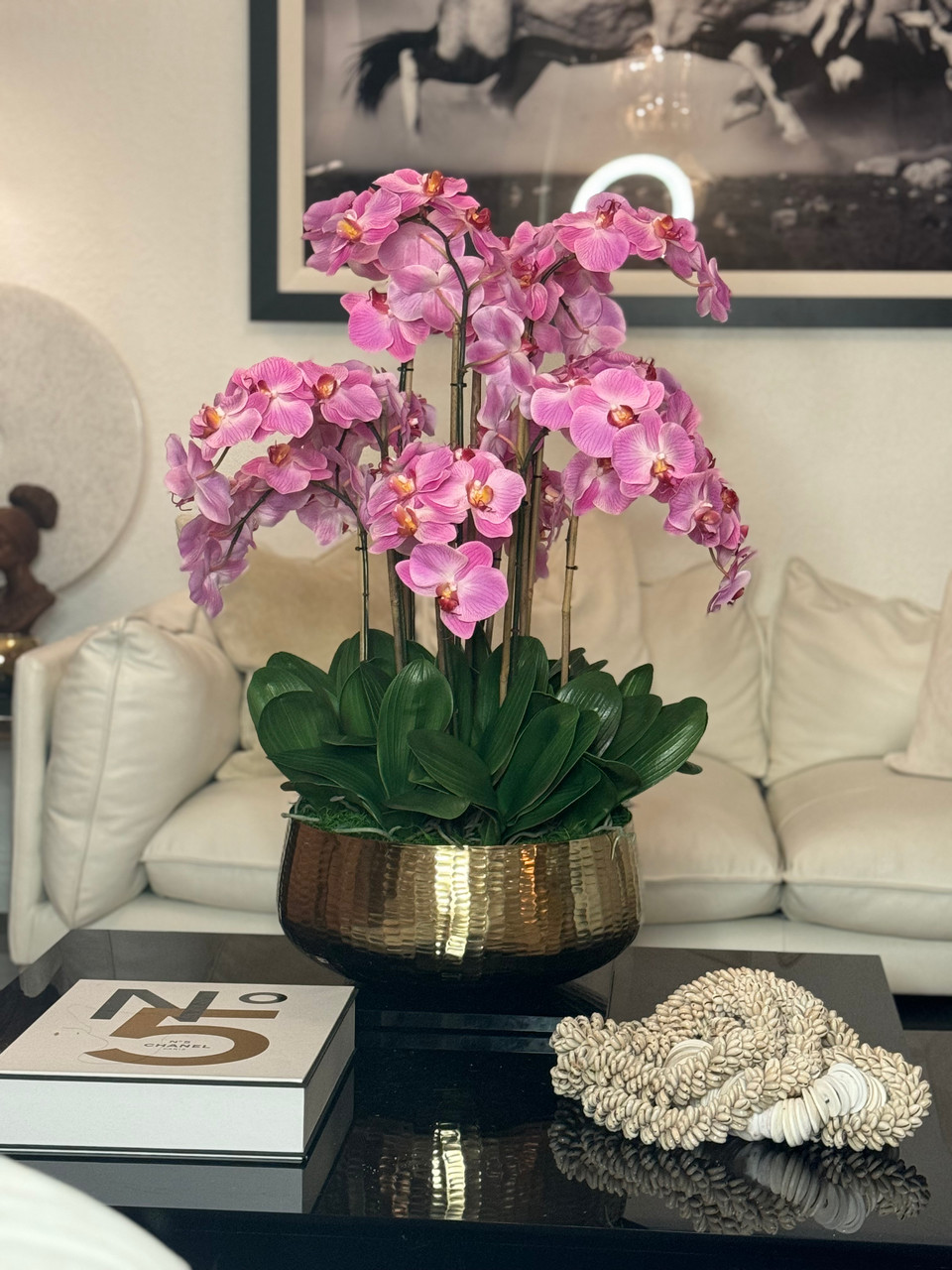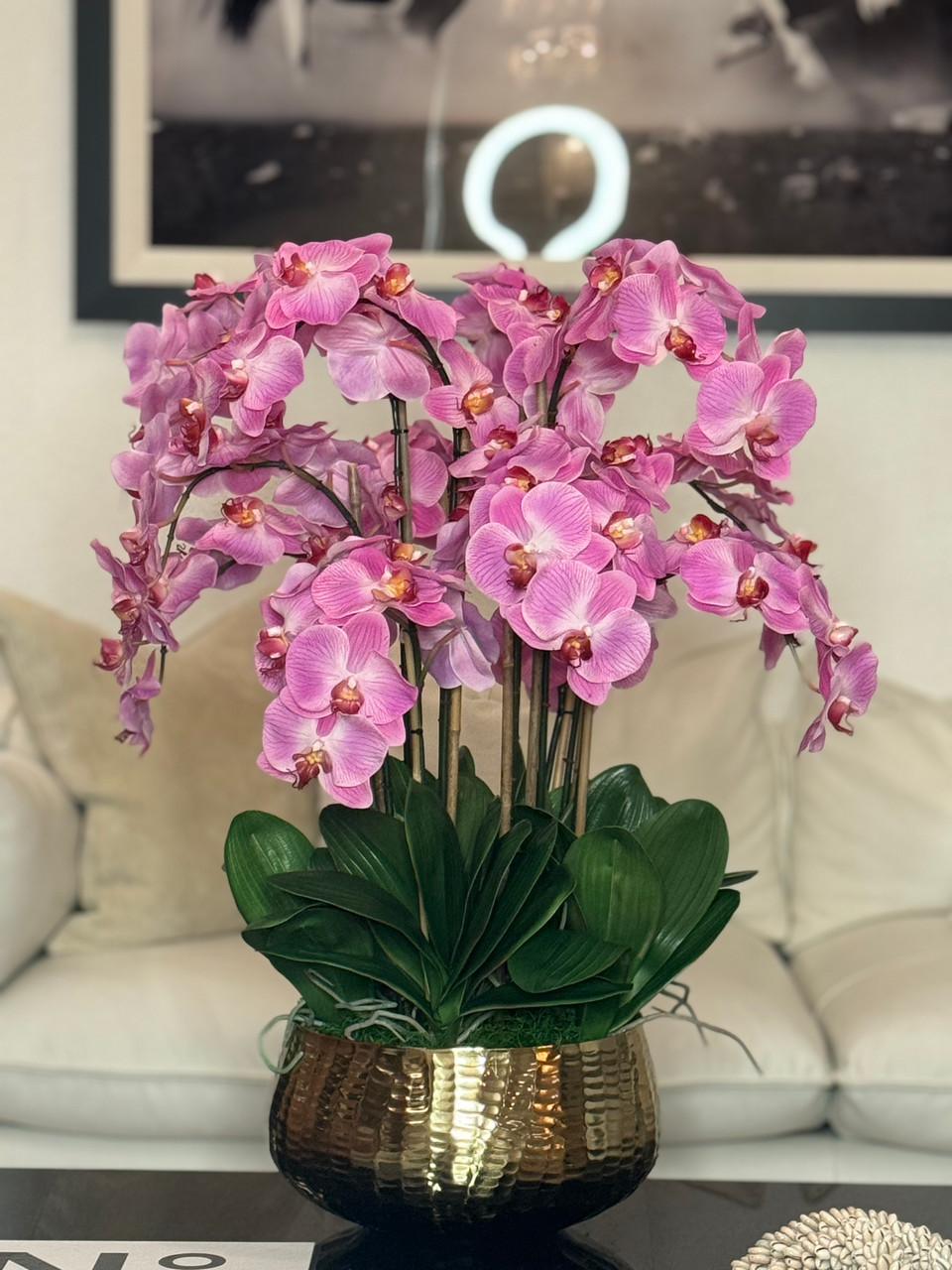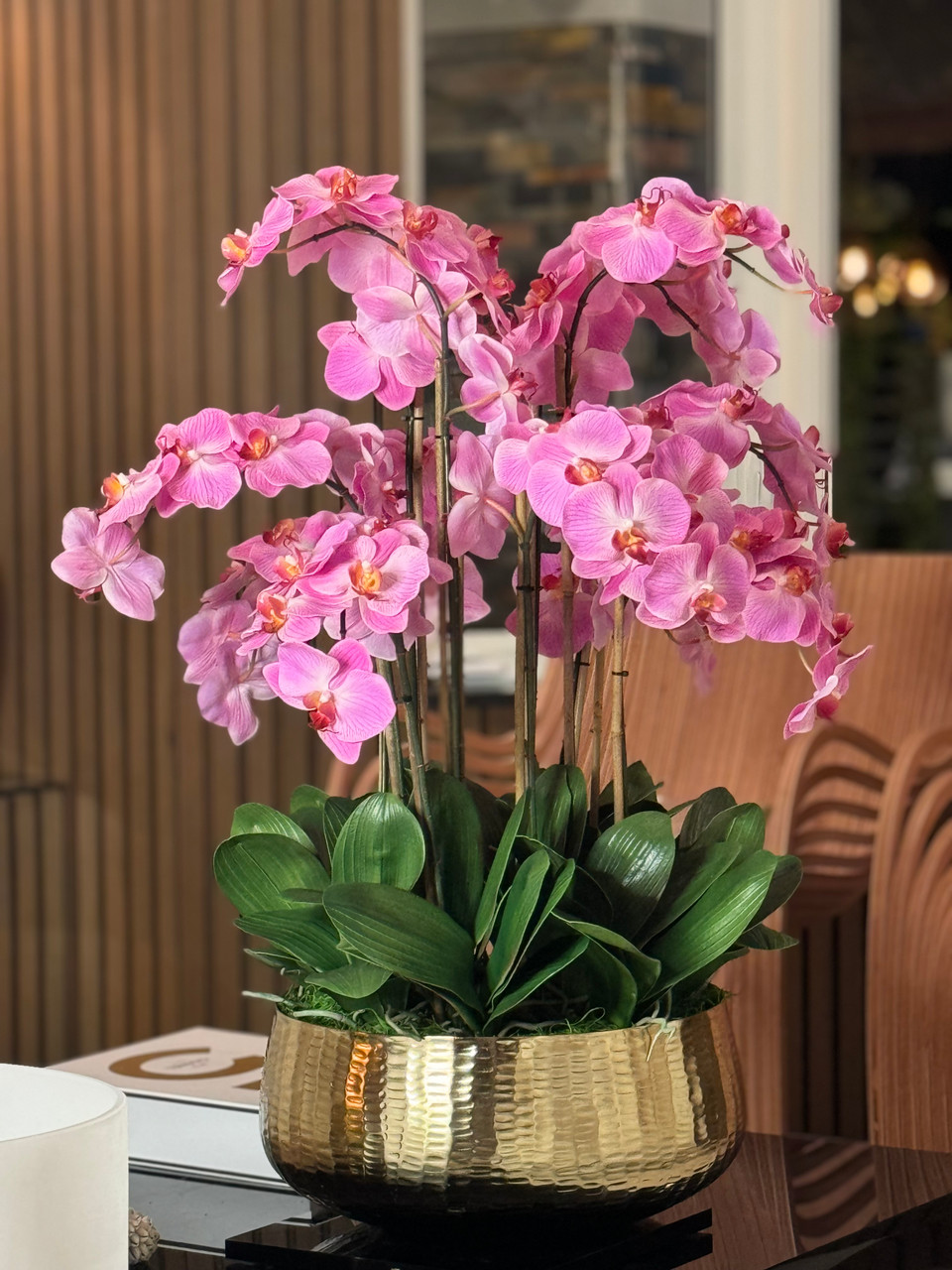 Light Pink Phalaenopsis Orchids Floral Arrangement in Medium Gold Planter