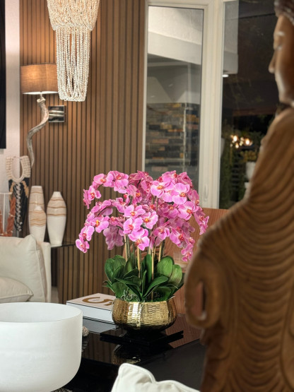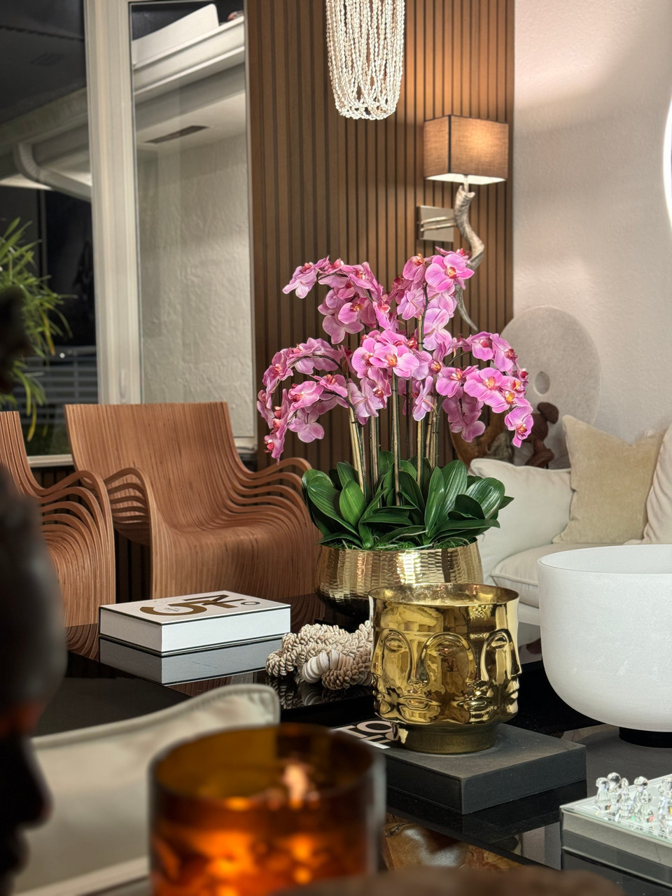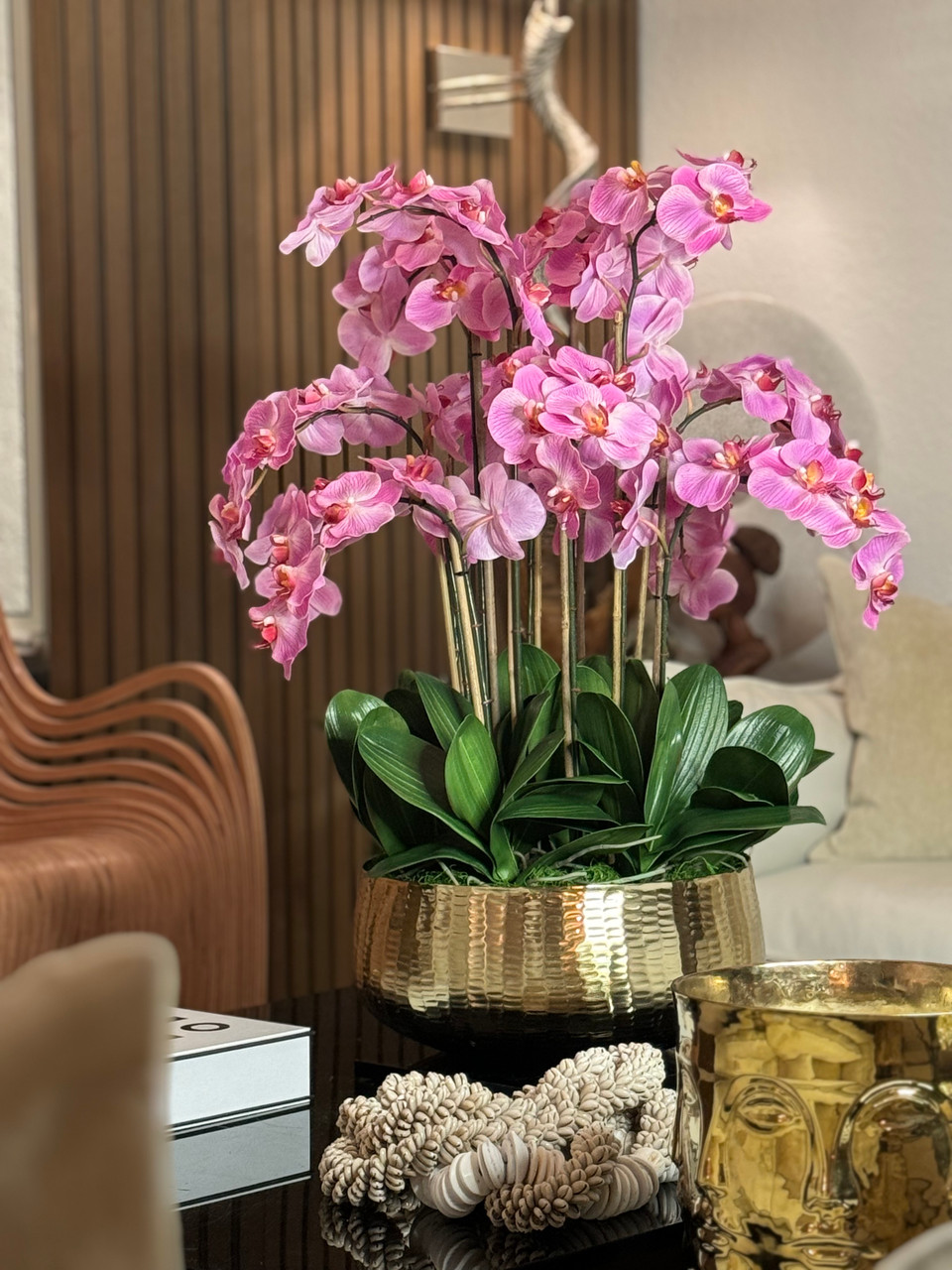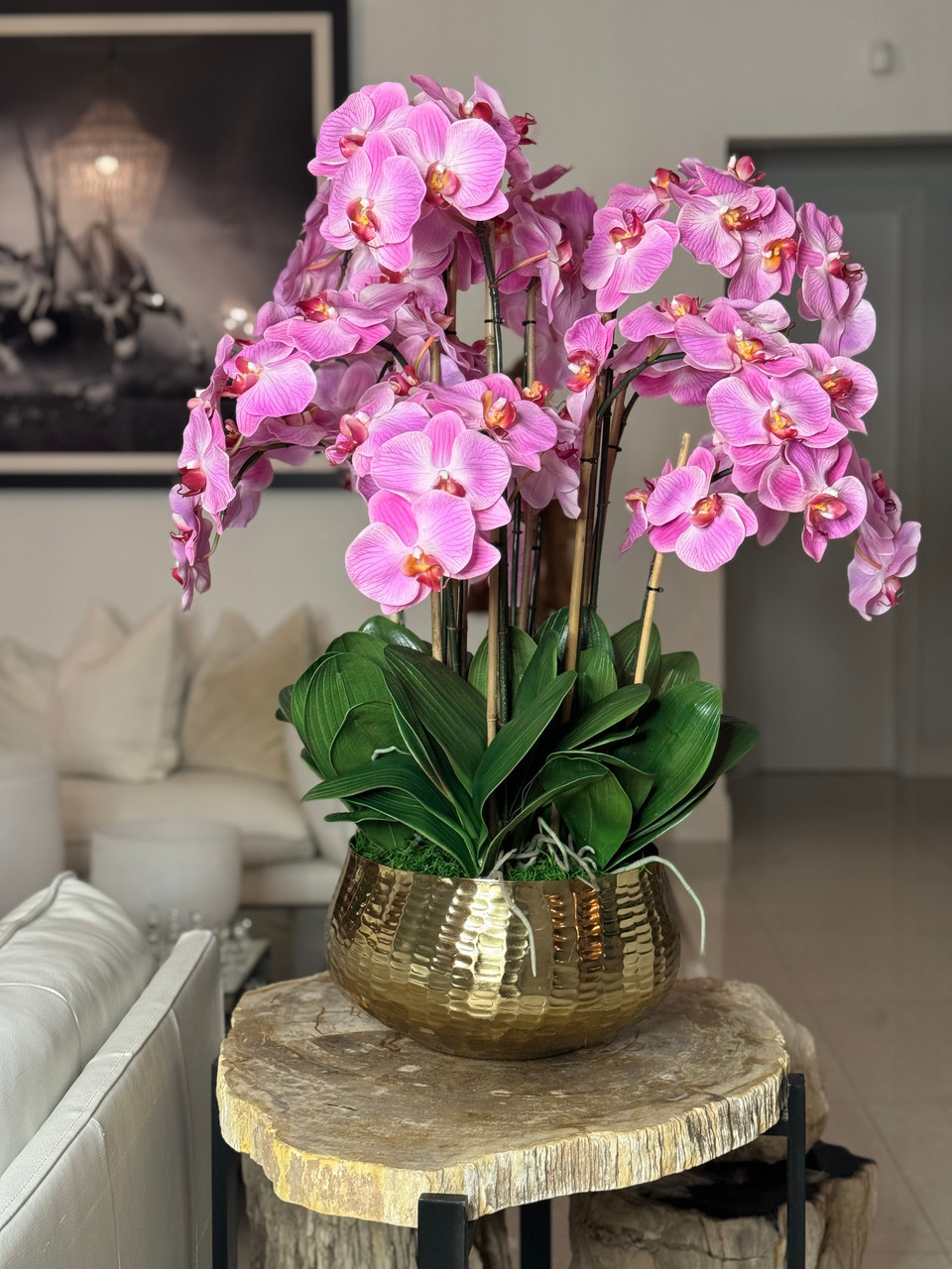 Light Pink Phalaenopsis Orchids Floral Arrangement in Medium Gold Planter