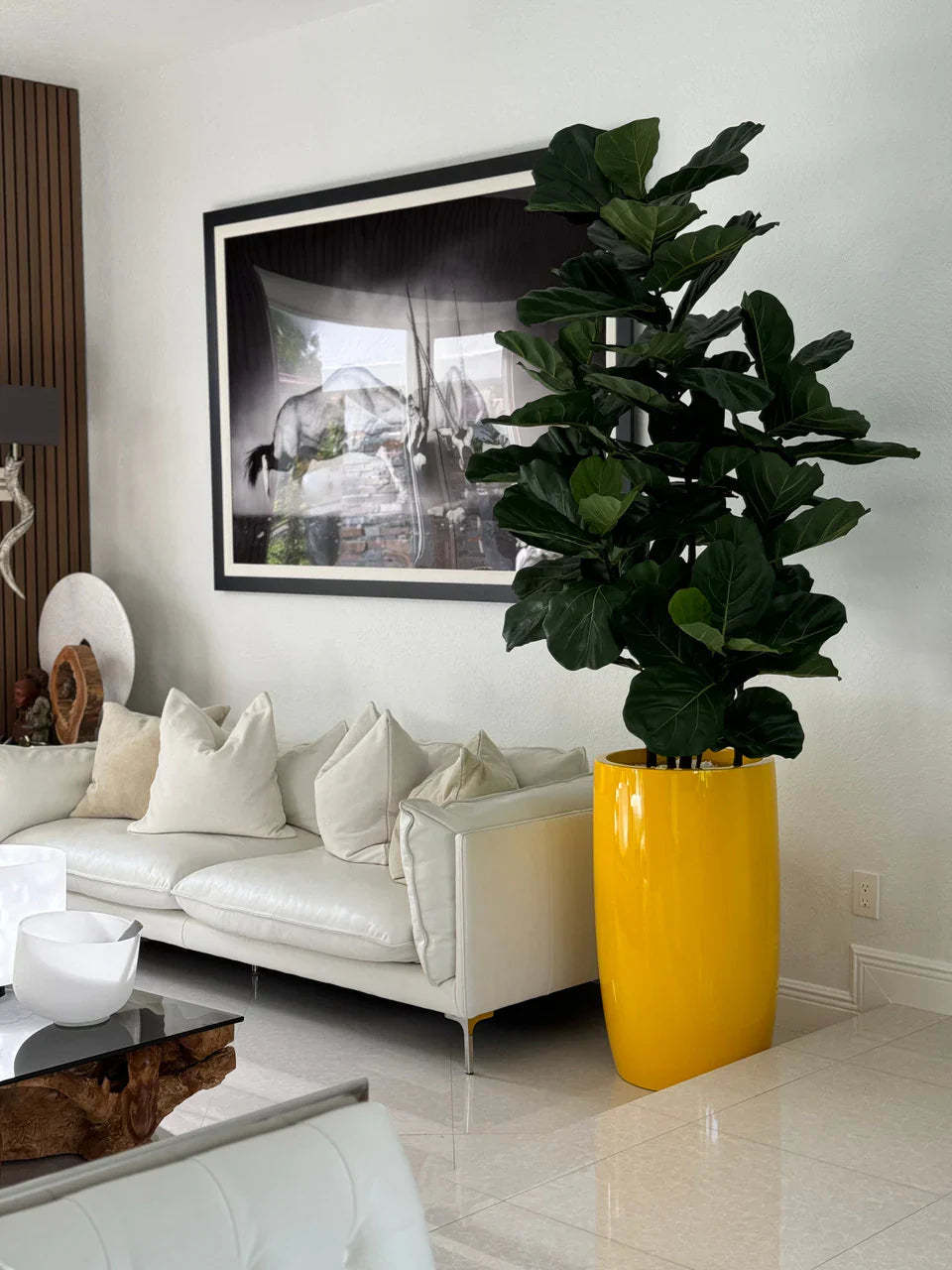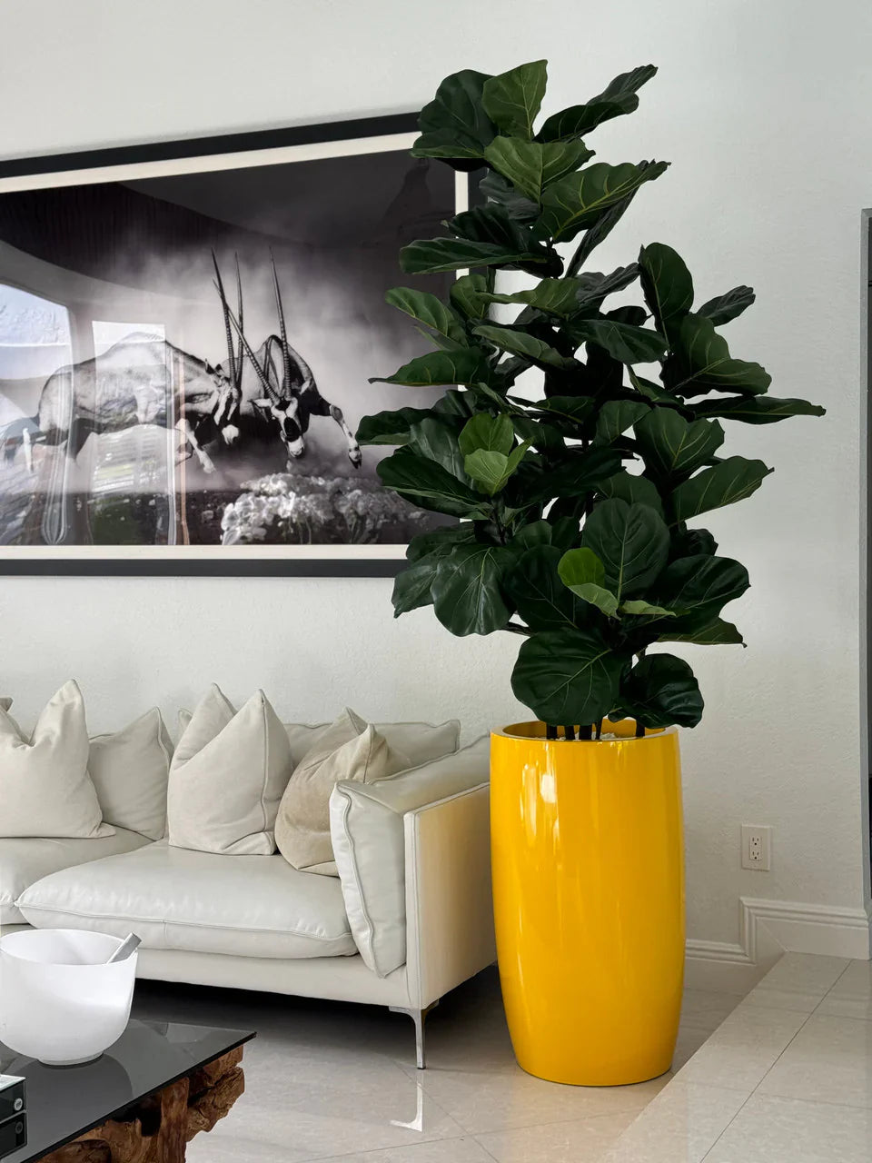 The Lushean™ Fiddle Leaf Tree in Glossy Yellow Lisbon Planter is more than décor—it’s a bold, sculptural centerpiece that brings vibrancy, elegance, and effortless greenery into your space.