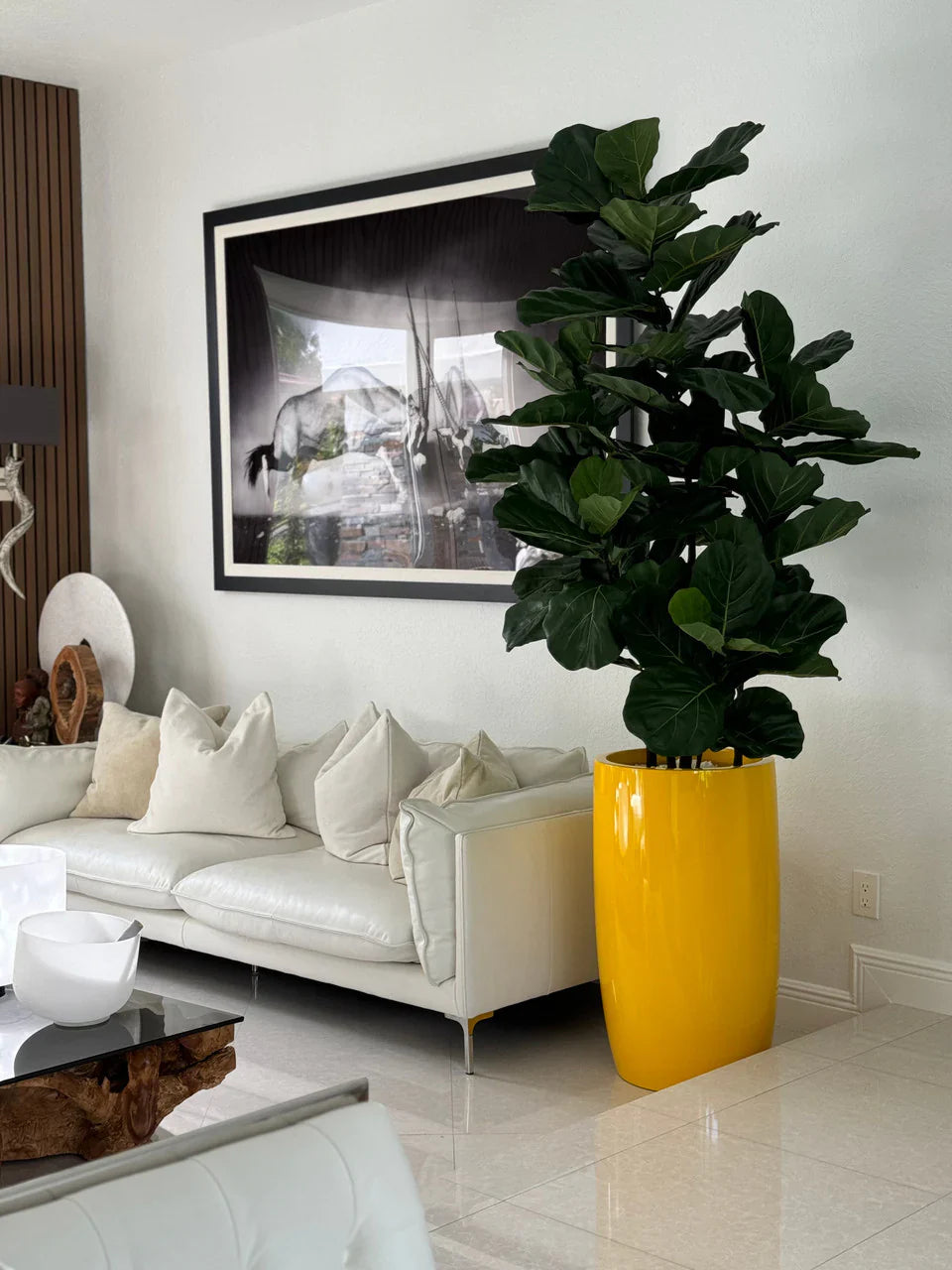 BOLD COLOR MEETS ICONIC GREENERY – THE LUSHEAN™ FIDDLE LEAF TREE IN GLOSSY YELLOW LISBON PLANTER